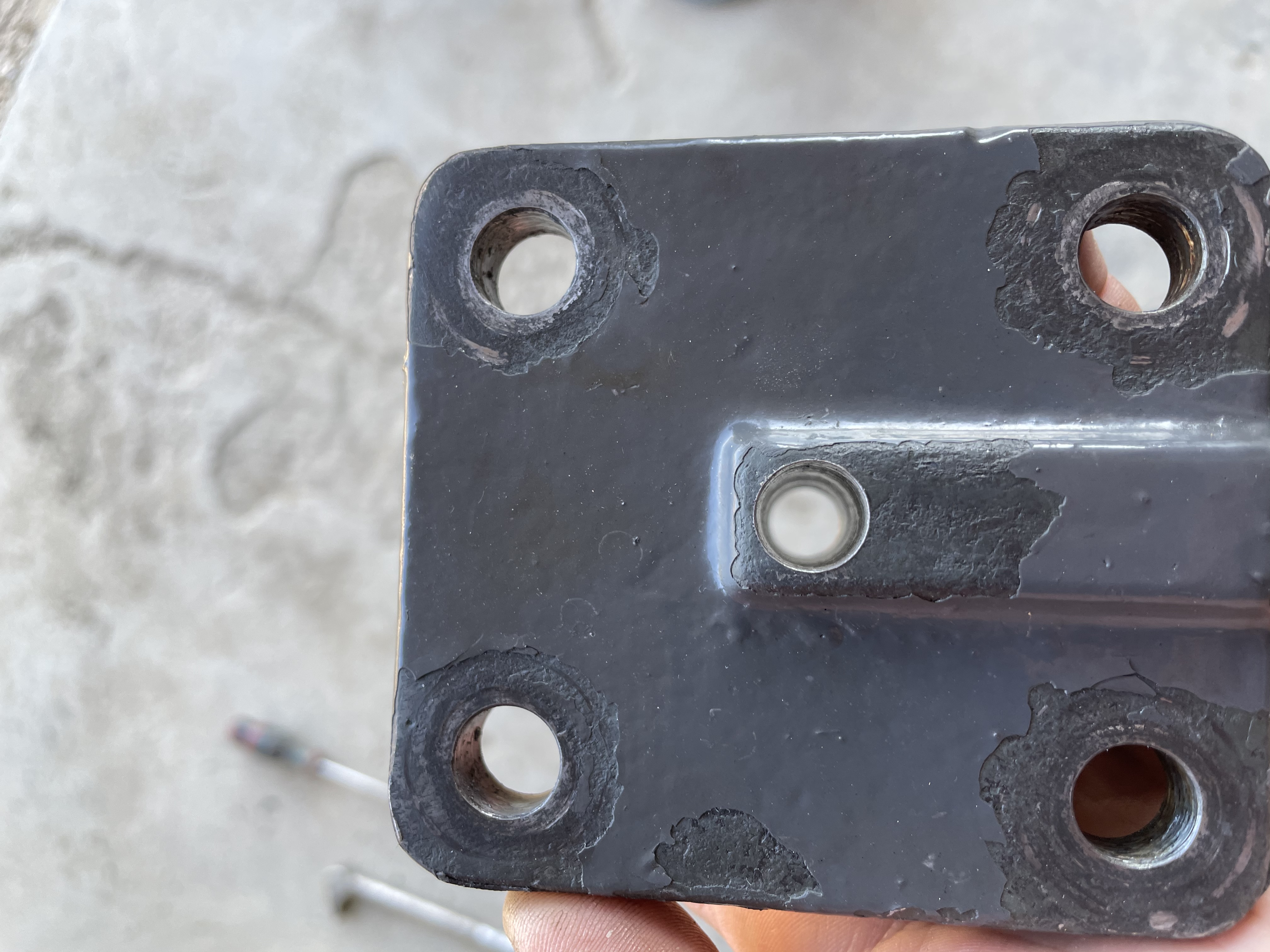 | Légende : | Agrandissement du trou une fois que le pont a été percé pour la vis m6 puisse traverser |