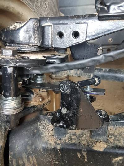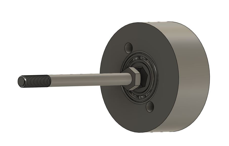 Montage d'une vis Hexagonale M6 au centre Pivot après avoir percé - taraudé celui-ci à M6. Perçage du chapeau de fusée pour passage de la vis M6. Montage de la vis M6 au loctite et réglage pour affleurement dessous tête de vis à 0/+1 mm. Montage du coupleur sur vis M6 Montage de l'embase avec roulement 6802-2RS Montage du RTY par dessus, pluggé sur le coupleur. (RTY070LVEAX ou NAX recommandé pour montage pivot) Réglage de la position du coupleur sur le 6 pan vis et réglage capteur RTY pour avoir 2.5v roues droites Perçage-taraudage chapeau de fusée à M5 pour maintien RTY. (Vis M5x55)